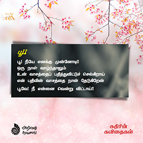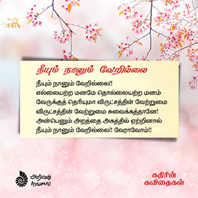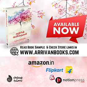 Kathirin Kavithaigal provides a new dimension to Tamil Poetry; it espouses Tamil literature to world-class standards through contemporary design and thoughts. Techniques and Expressions in this book provide Tamil Books & Publications a fashionable look. Context of love diminishes without a poetic sense; a poetic sense enhances it and born with it; you could feel the sense of it from this book. A fine art is identified through its strokes; so as you could find Kathirin Kavithaigal becoming a fine literature through right use of rich vocabulary from ever green classic language. Love, Environment, Social aspects, and humanity are focal point of this collection; as you read through the book you can hear the tunes and beats of the songs composing at rear. As a prism converges different wavelengths of light; you could feel poems converging together with contemporary design and classic notes to question, to love, to enhance, to embrace and enables to evolve our thoughts.