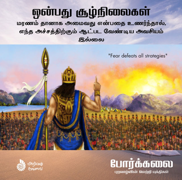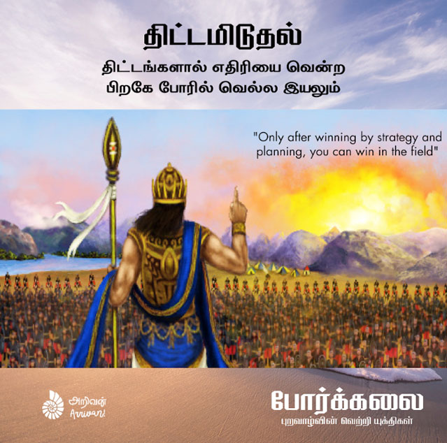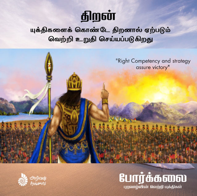 Porkkalai is translation of “The Art of War” by Sun Tzu in Tamil language; it is one of the oldest classics from Chinese Literature used even today in field of military, business strategy and many more. Sun Tzu’s thought-provoking ideas can be very well applied to Management of people and to win in competitive environments. Various countries have adopted & researched to apply Sun Tzu’s Principles in defining Strategies and Management. Sun Tzu’s Principle from Author’s perspective below.